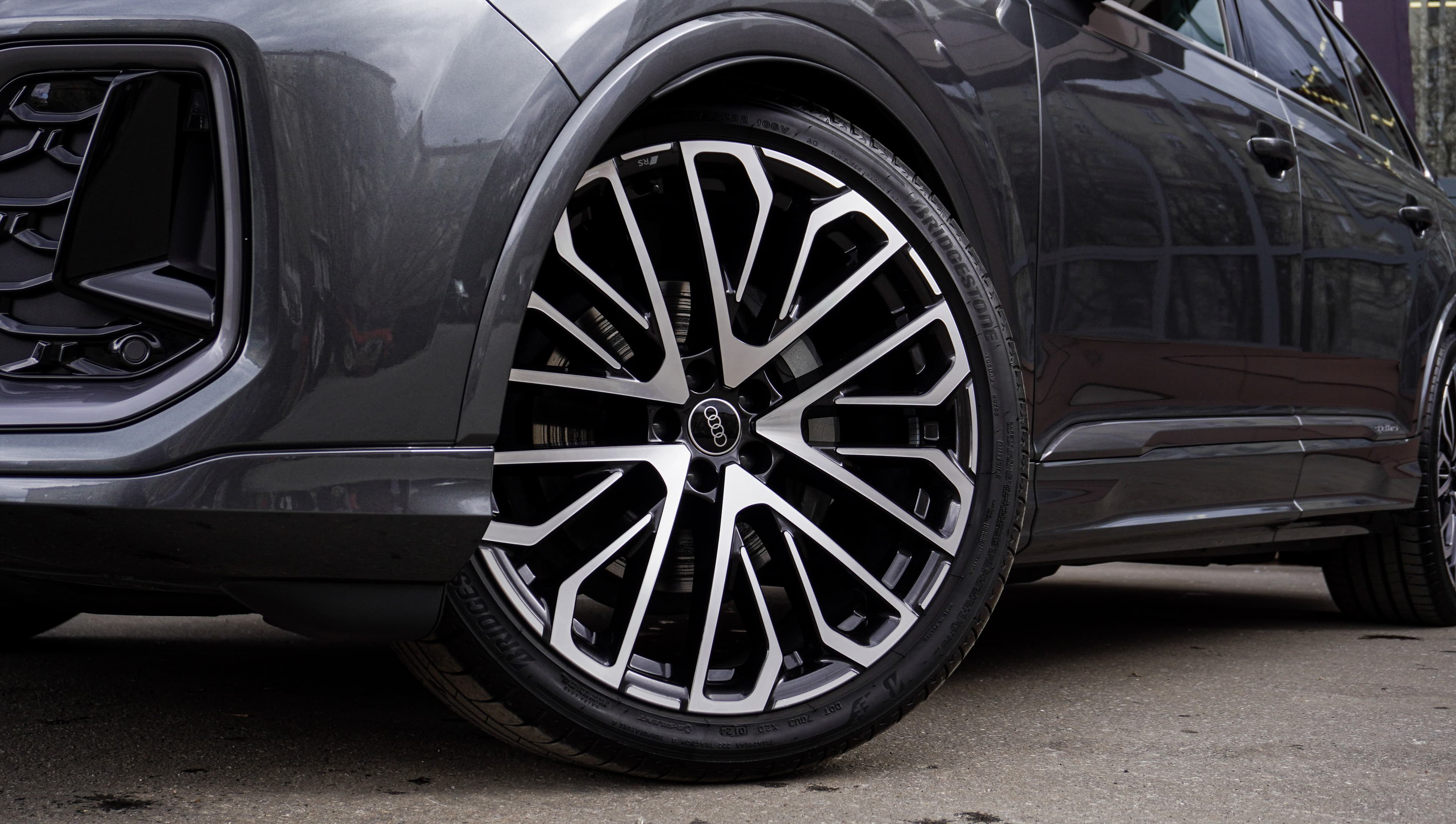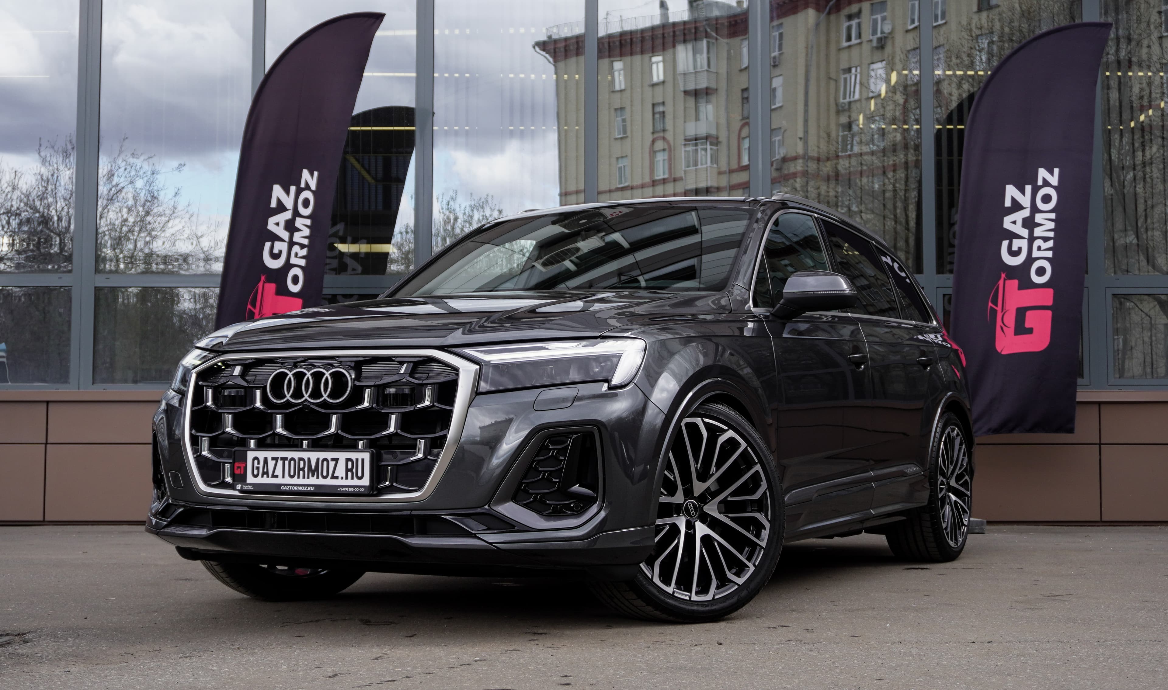 Абсолютно новый, без пробега. Серый перламутровый цвет Daytona Grey, черный кожаный салон. Мощный дизельный V6 3.0 TDI (286 л.с.), полный привод quattro, адаптивная пневмоподвеска, матричные фары, спортивный пакет S line, камеры и ассистенты. Панорамная крыша, 22-дюймовые диски Audi Sport. Европейская сборка.