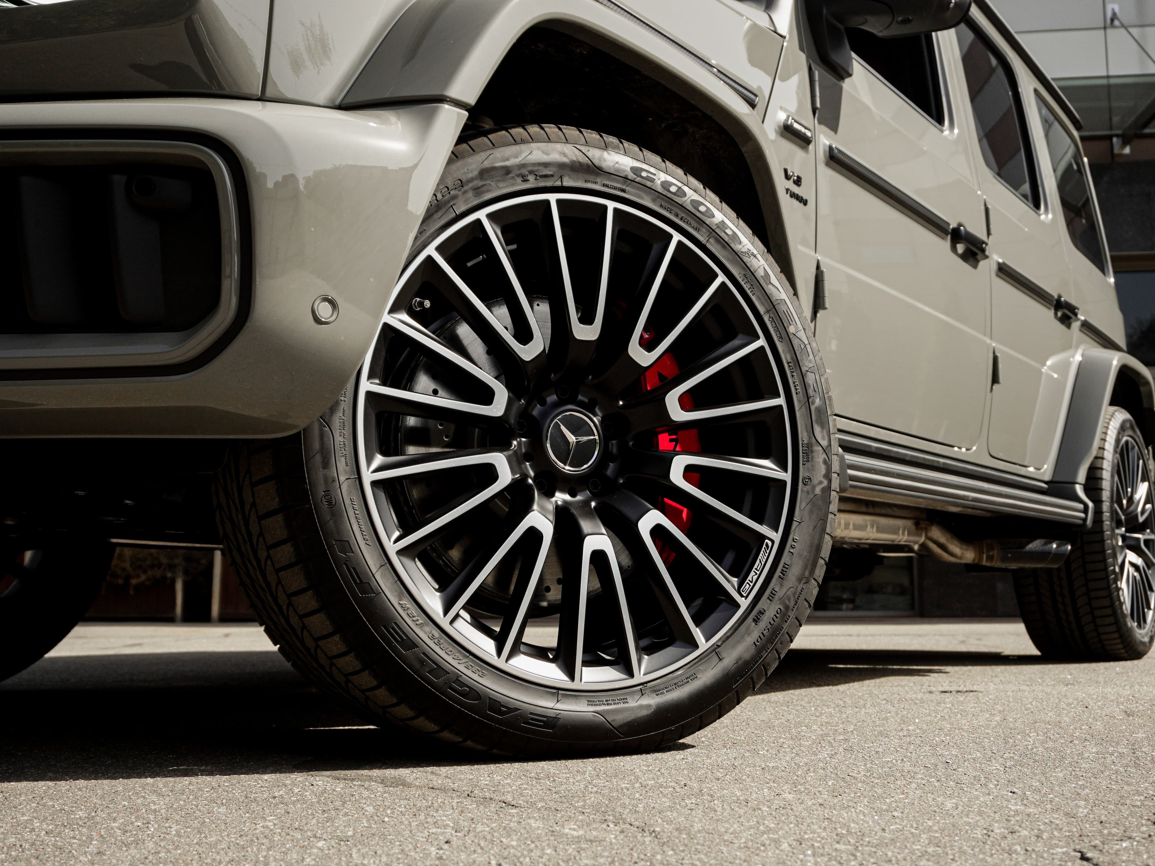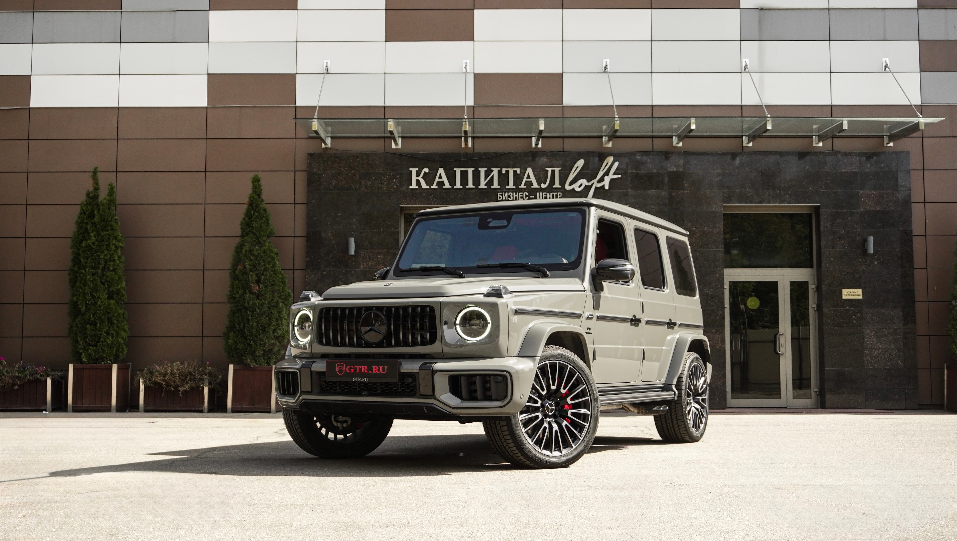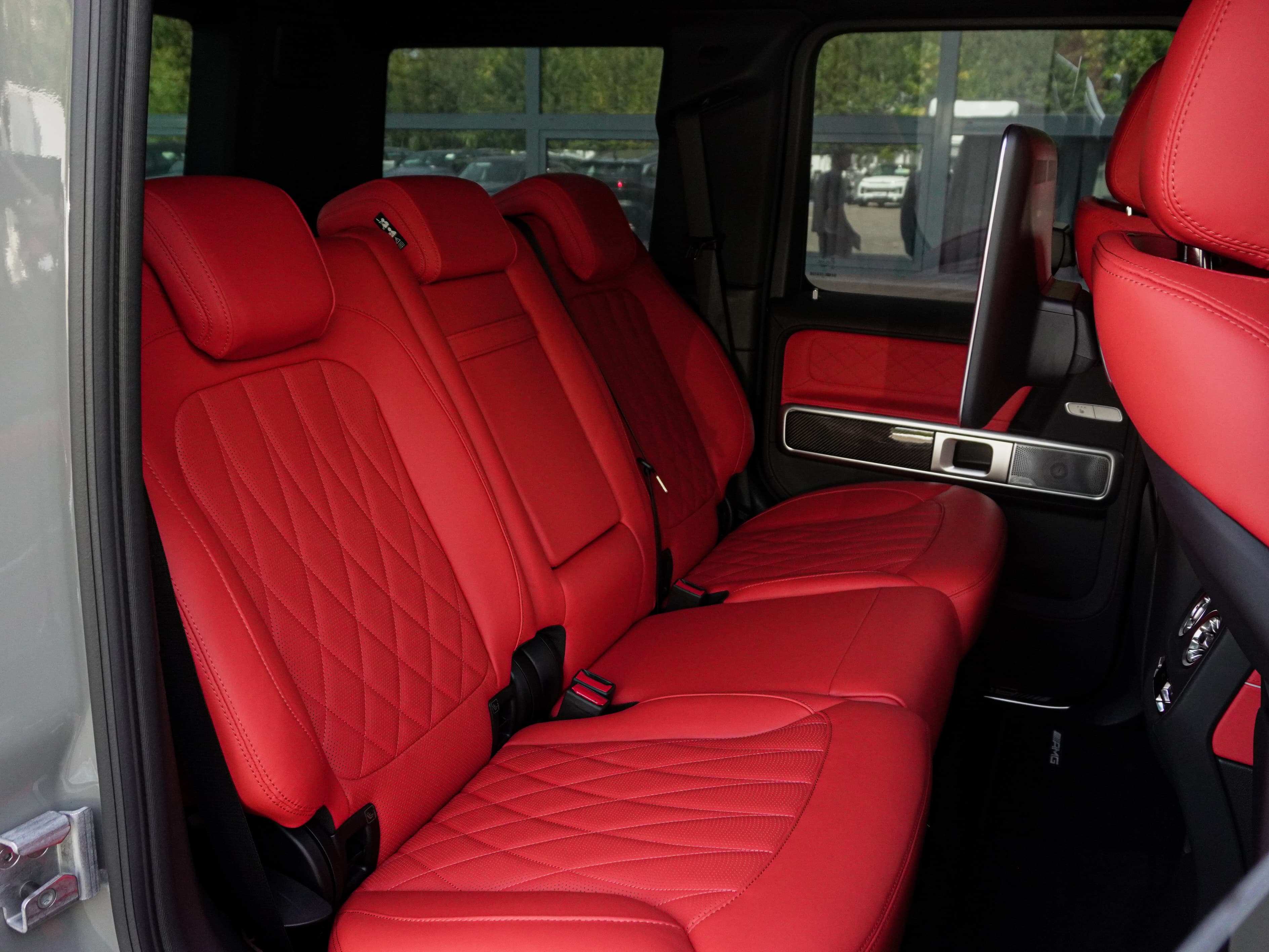 Mercedes-Benz G 63 AMG 2025 в классическом сером металлике с интерьером в оттенках «Красный перец / Чёрный». Оснащён AMG Performance-пакетом, активной подвеской, 22-дюймовыми коваными дисками и карбоновыми элементами MANUFAKTUR. Символ силы, статуса и безупречной роскоши.